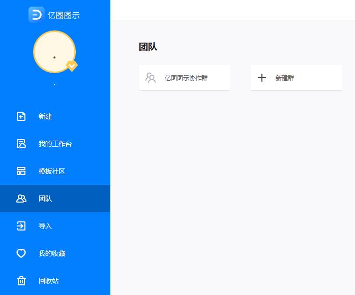 亿图图示网页版还有一个实用功能,就是“团队”,从名字上也不难看出,它就是应用于团队场景的。在这里,你可以新建协作群(如图):