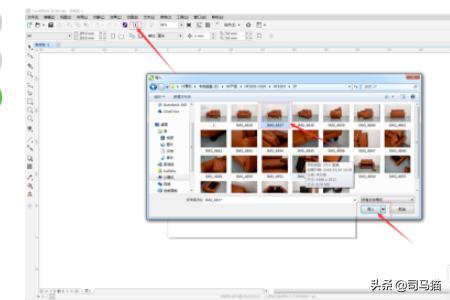 1、回到CDR,点击导入,找到刚才拍摄的图片,选中导入。
